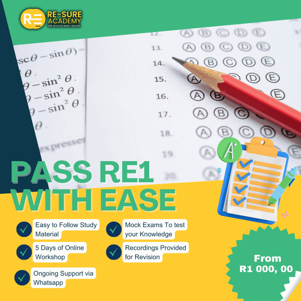 RE stands for Regulatory Exam. It’s a test you must pass if you want to work in South Africa’s financial services, like selling insurance or giving financial advice.