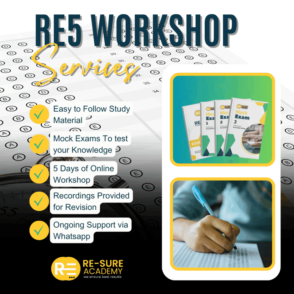 Thank you so so much for your assistance with RE5, many said this was impossible to pass, but your classes and mock exams made it easier for me👌. I recognised a few questions that were asked in the actual exam. My second time was a charm 🙌🎉, from fail to 74% .